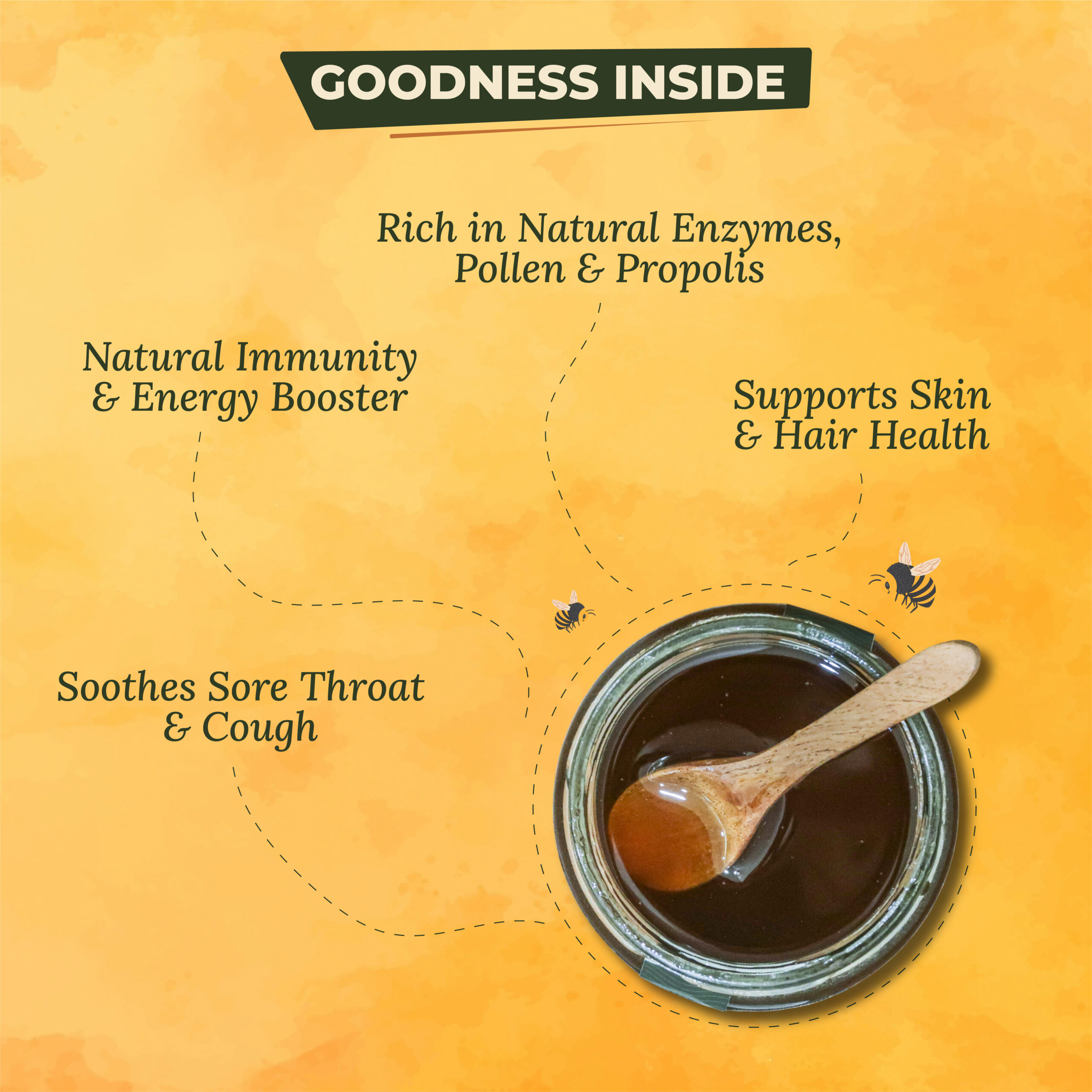 - No Artificial Infusions: Pure, raw honey with no added flavours, sugar or syrups.